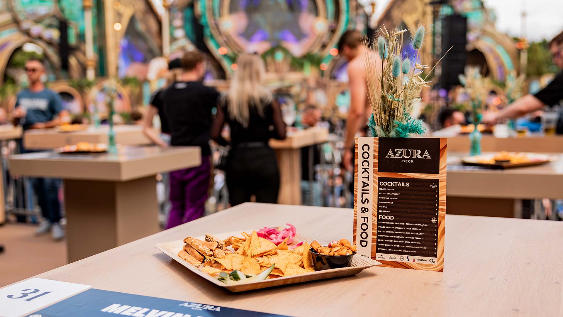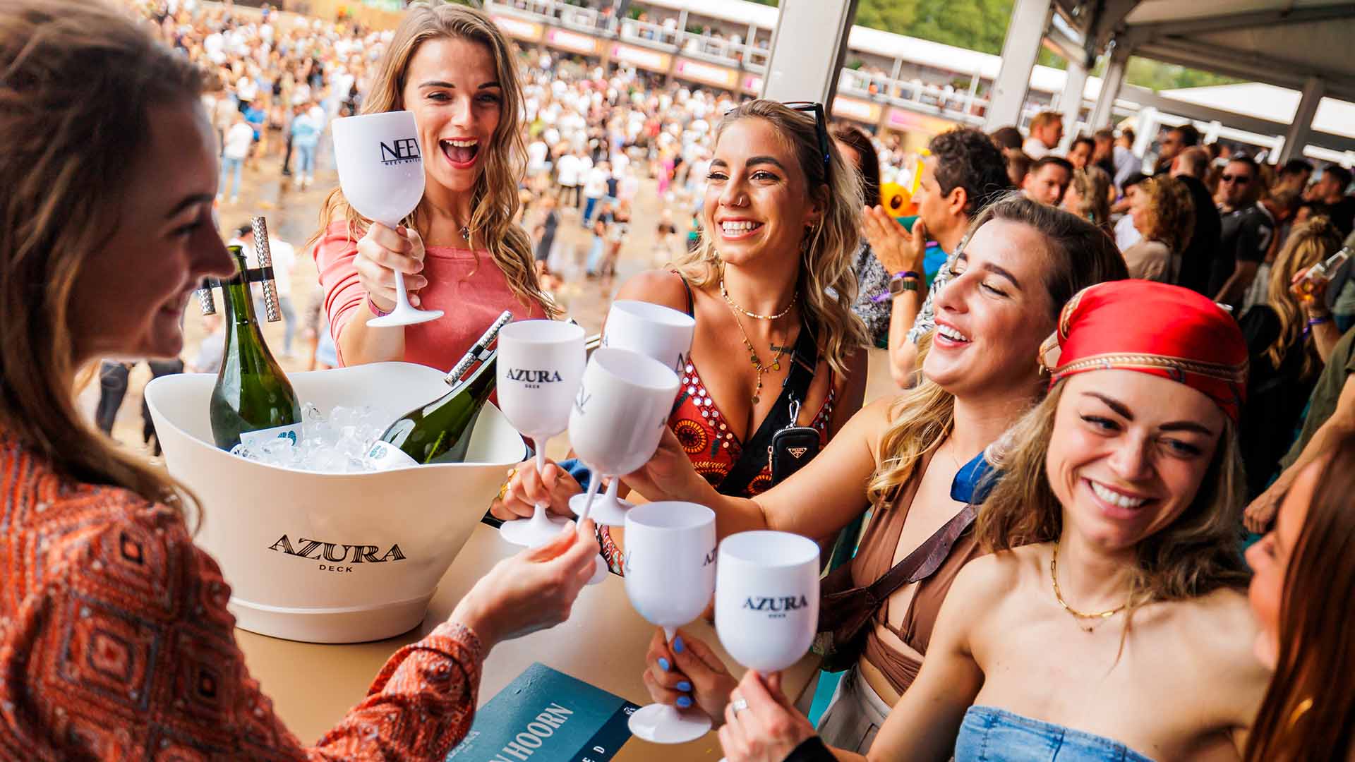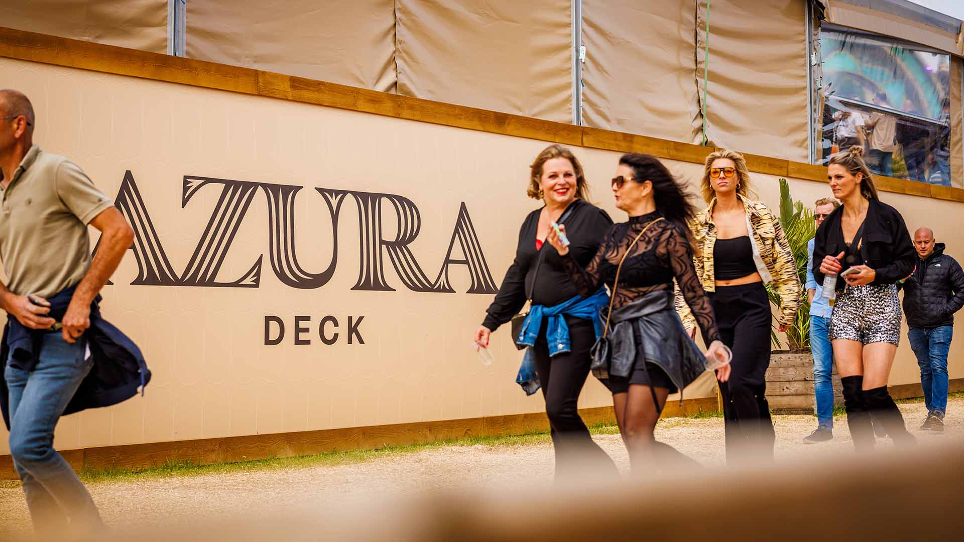 Het Azura Deck biedt een spectaculair uitzicht op de Mainstage, waardoor je de optredens van nationale en internationale artiesten van dichtbij beleeft. Of je nu komt met vrienden, collega’s of relaties, het Azura Deck is dé plek voor wie dicht bij de actie wil zijn, maar wél met een luxe touch. Bij aankomst proost je met een glas bubbels, geniet je gedurende de dag van fingerfood en kun je terecht bij het foodcourt, waar je tegen betaling een ruime keuze hebt aan gerechten.