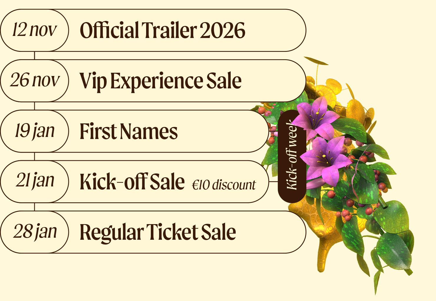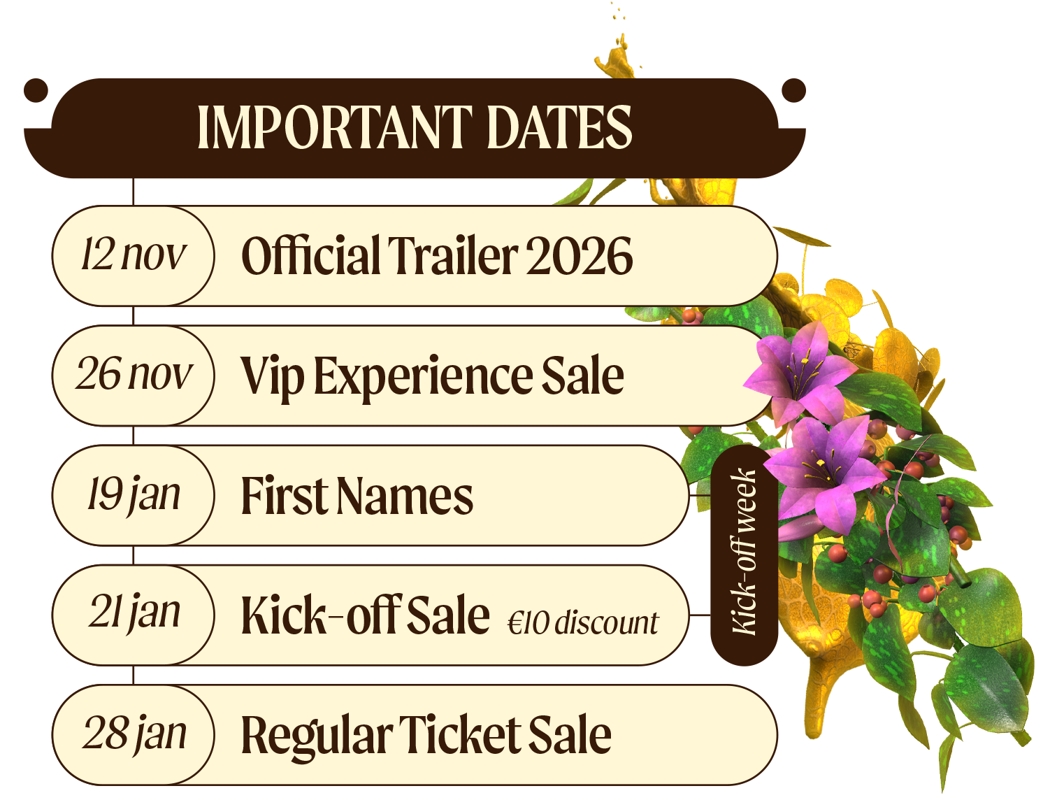 Begint het ook al te kriebelen bij jou? Waan je dan weer voor evens in onze prachtige festivalwereld en check de 2025 Recap of lees de 2026 Theme Story.