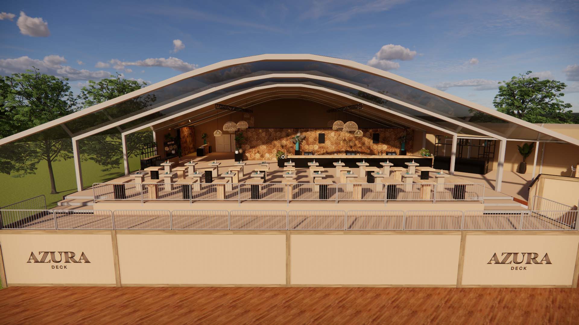 Het Azura Deck bevindt zich op een verhoogd platform met uitzicht op de Mainstage.